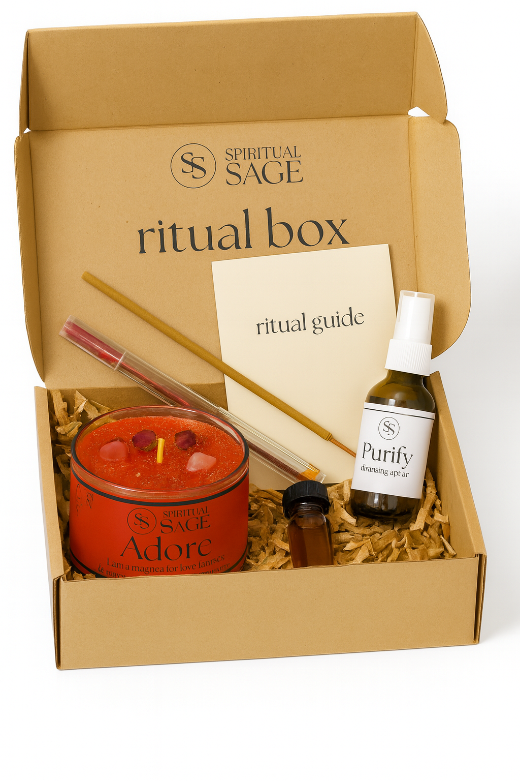 Open your heart to love with the Adore Ritual Box. Featuring the red Adore Candle, this kit is charged with the energy of attraction, passion, and aligned soul connections.