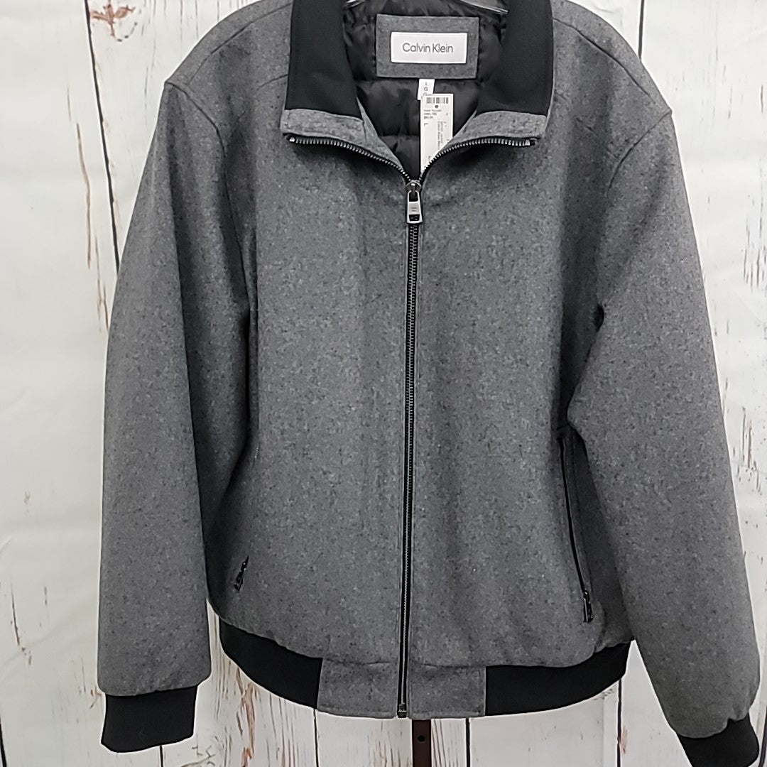 Calvin Klein Men's Wool Bomber Jacket with Knit Trim - Charcoal