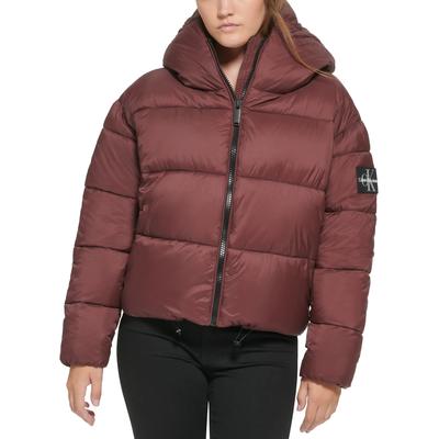 NWT Calvin Klein Jeans Women's Cropped Hooded Puffer Jacket - Bitter Chocolate