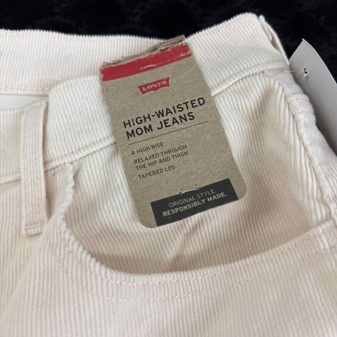 NWT Levi's(r) Womens High-Waisted Mom Jeans (White Smoke) Women's Jeans. Corduroy 32x27. Tapered leg. Relaxed thru hip and thigh