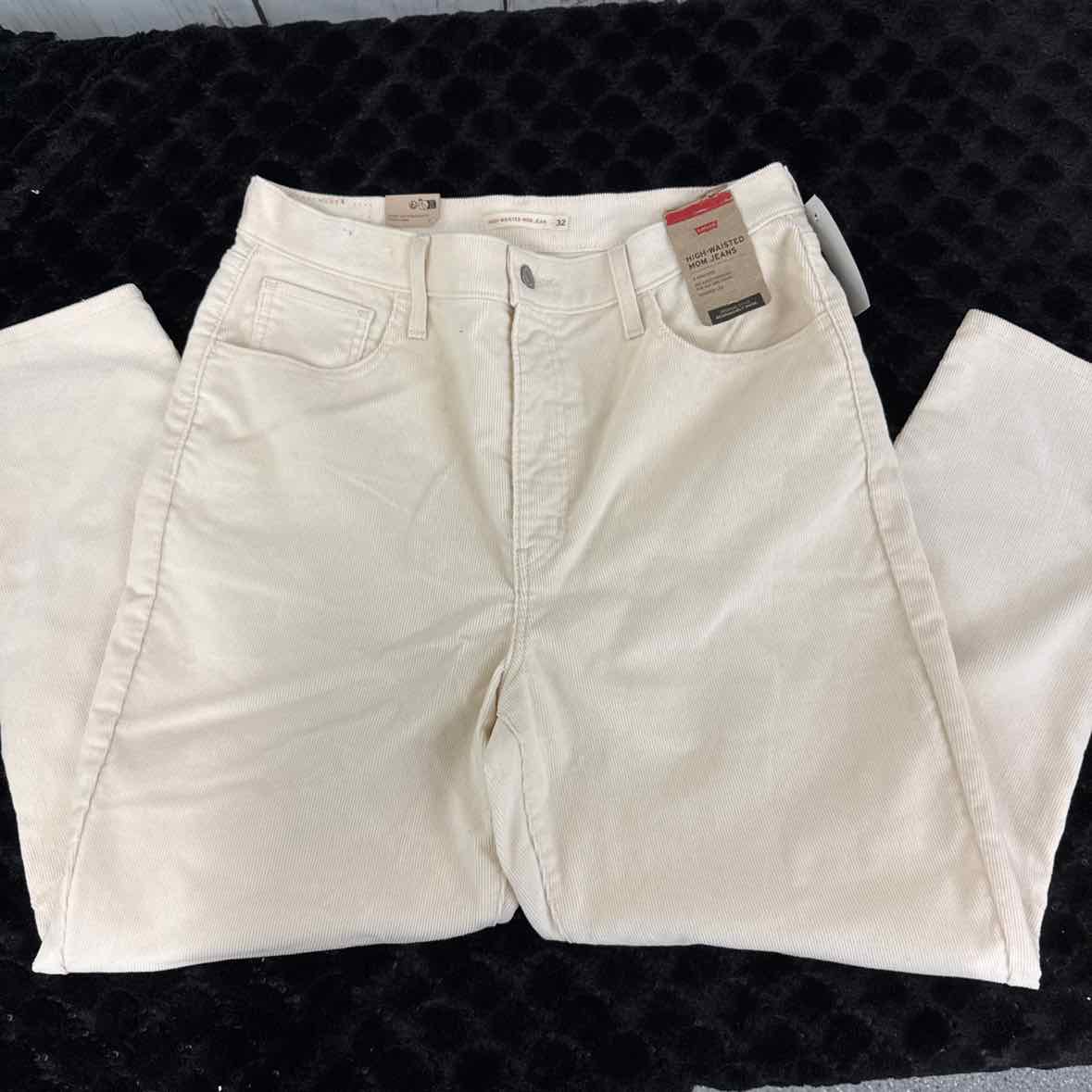 Levi Size 32 X 27 Cream Corduroy High Waisted Mom Jeans Pants