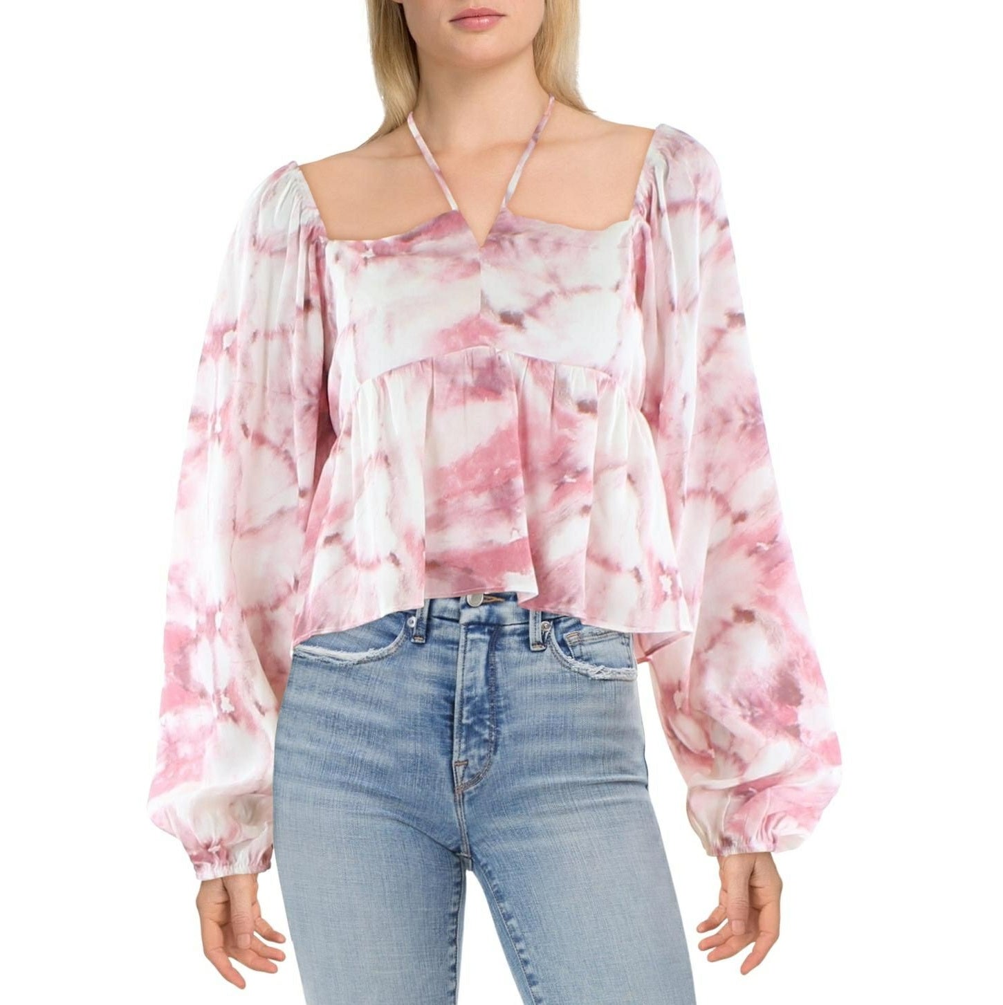 Lucy Paris Size L Pink Tie-Dye Bishop Sleeve Cropped Blouse NWT