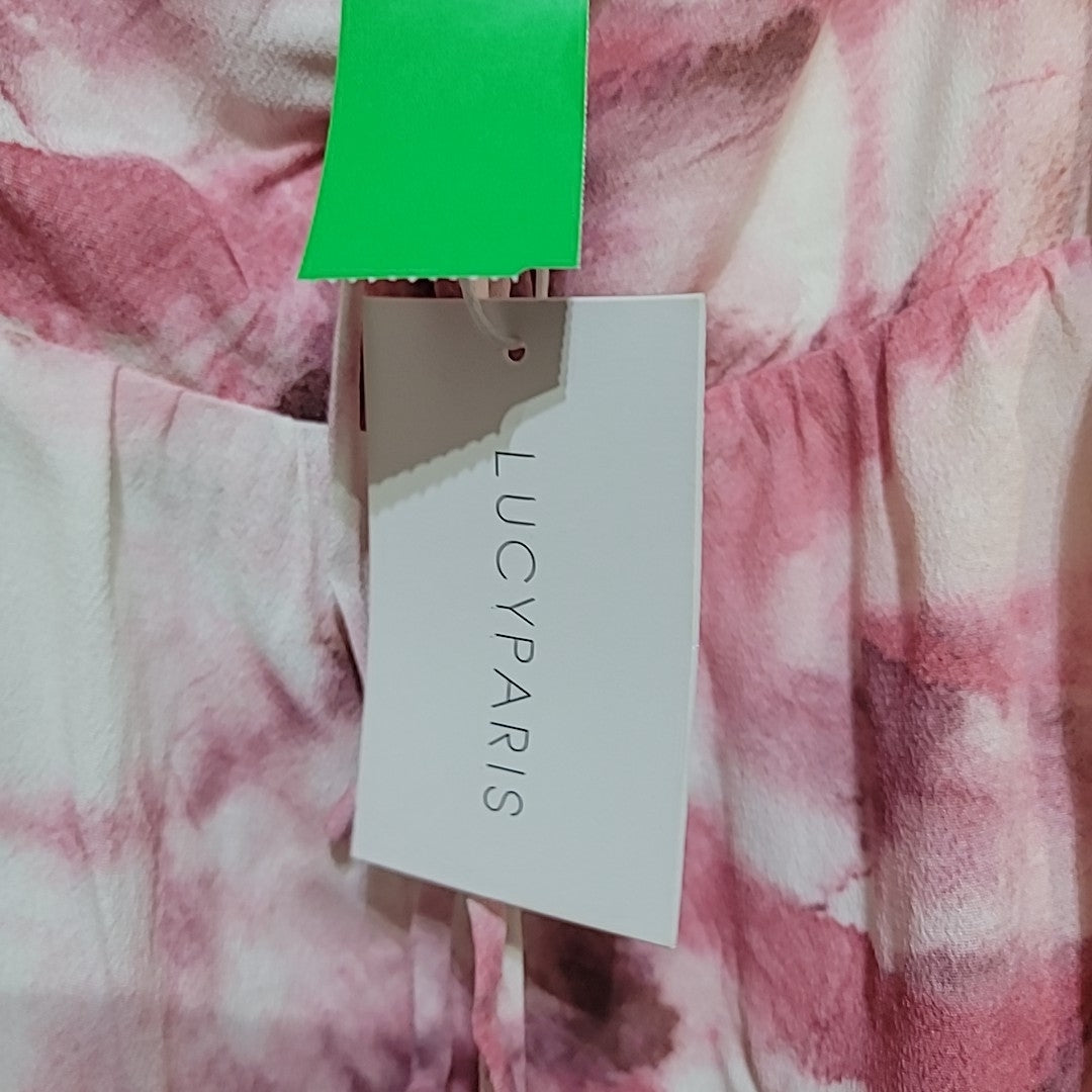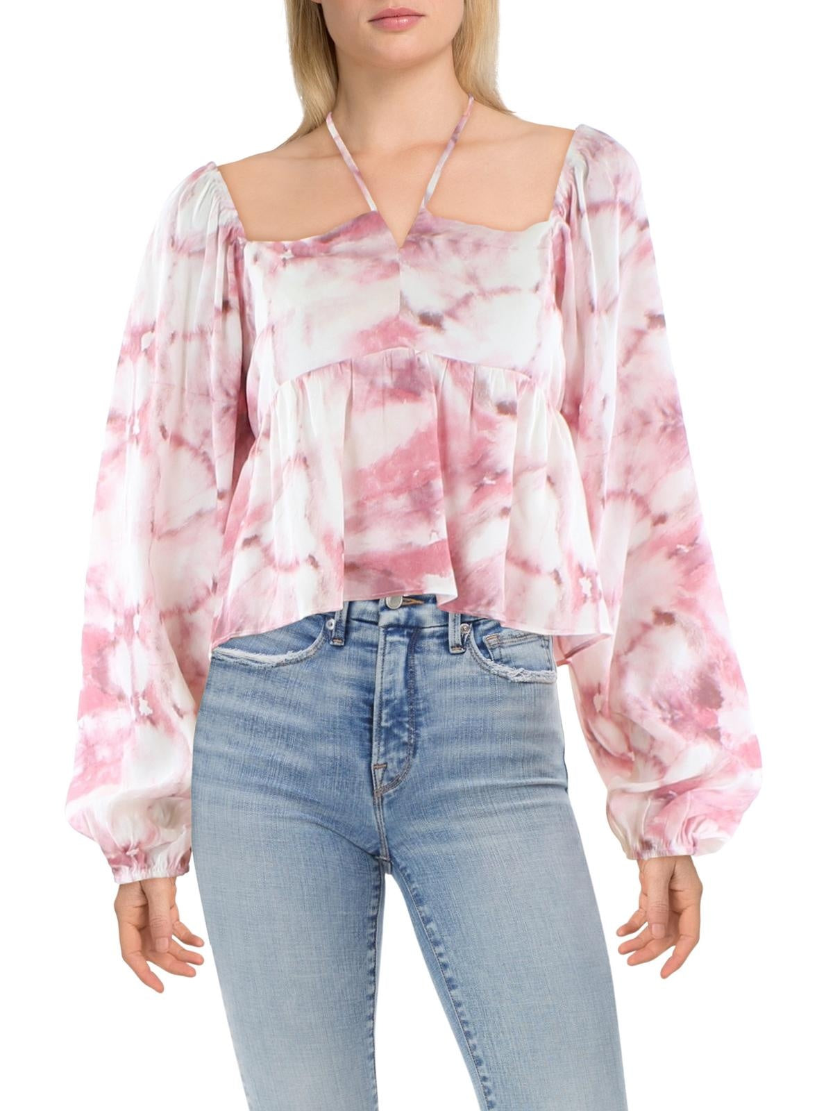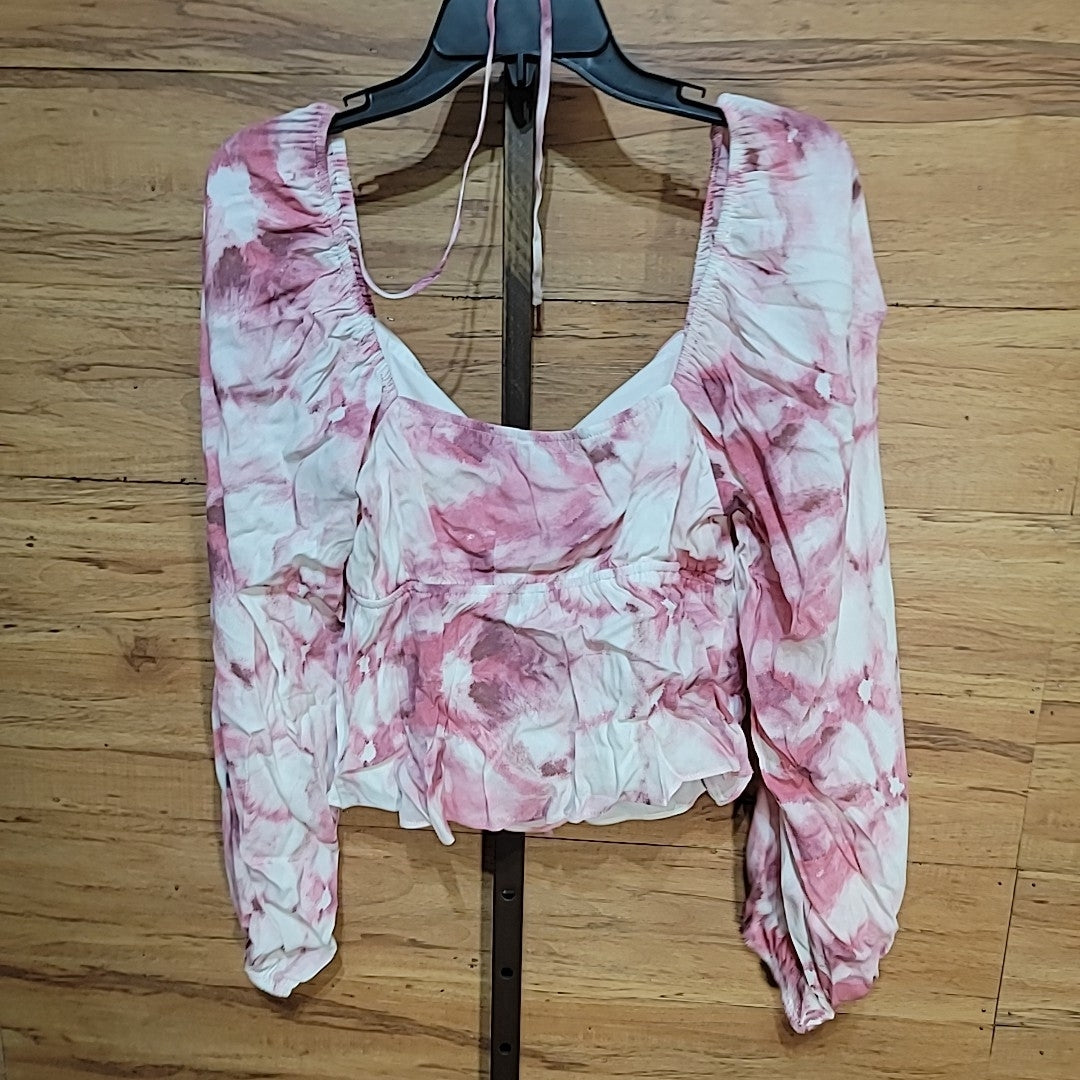Lucy Paris Size M Pink Tie-Dye Bishop Sleeve Cropped Blouse NWT