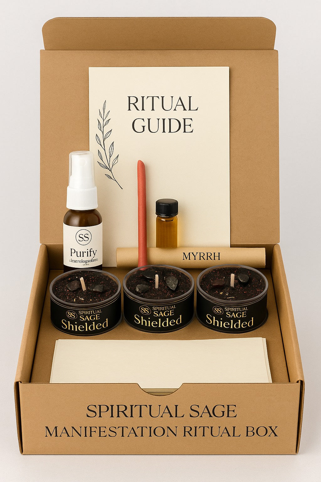 Stand in your power with the Shielded Ritual Box. Built around the black Shielded Candle, this set creates a spiritual shield to guard your energy, home, and spirit.