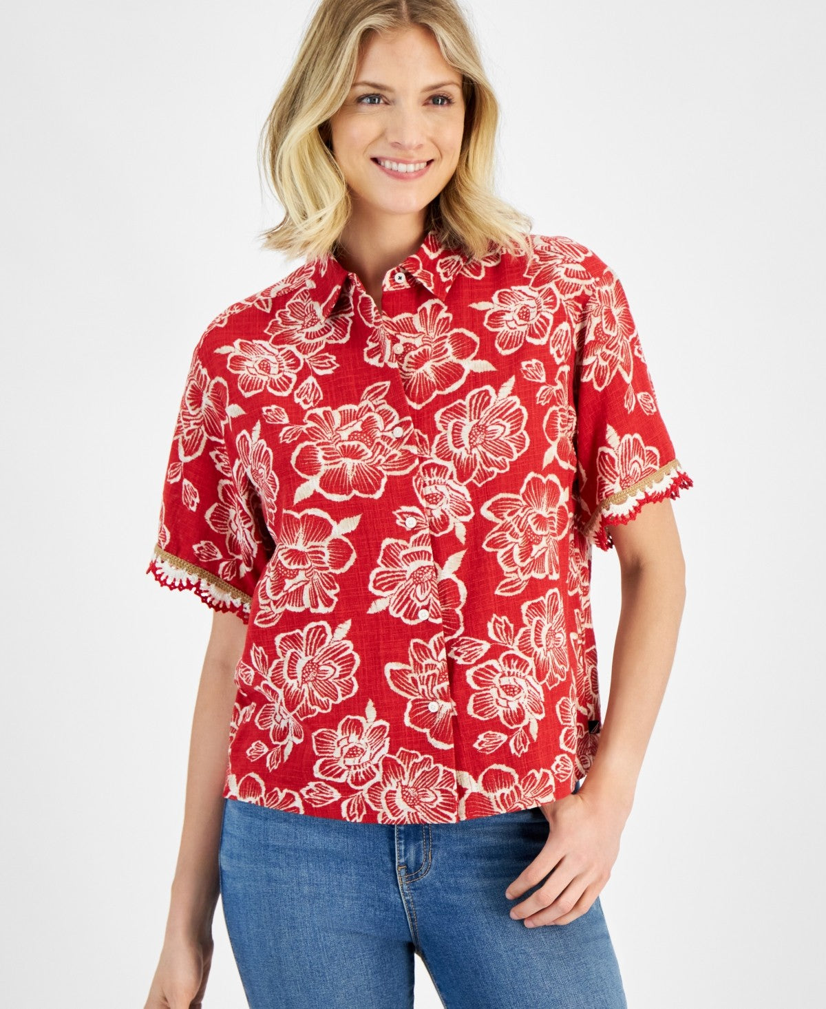 Womens Crochet Trim Short Sleeve Button-Down Top Manufacturer - Nautica Retail - $59.50 Style Type - Button-Down Top Collection - Nautica Sleeve Length - Closure - Material - 55% Cotton/45% Viscose Fabric Type - Knit Specialty - Floral Print