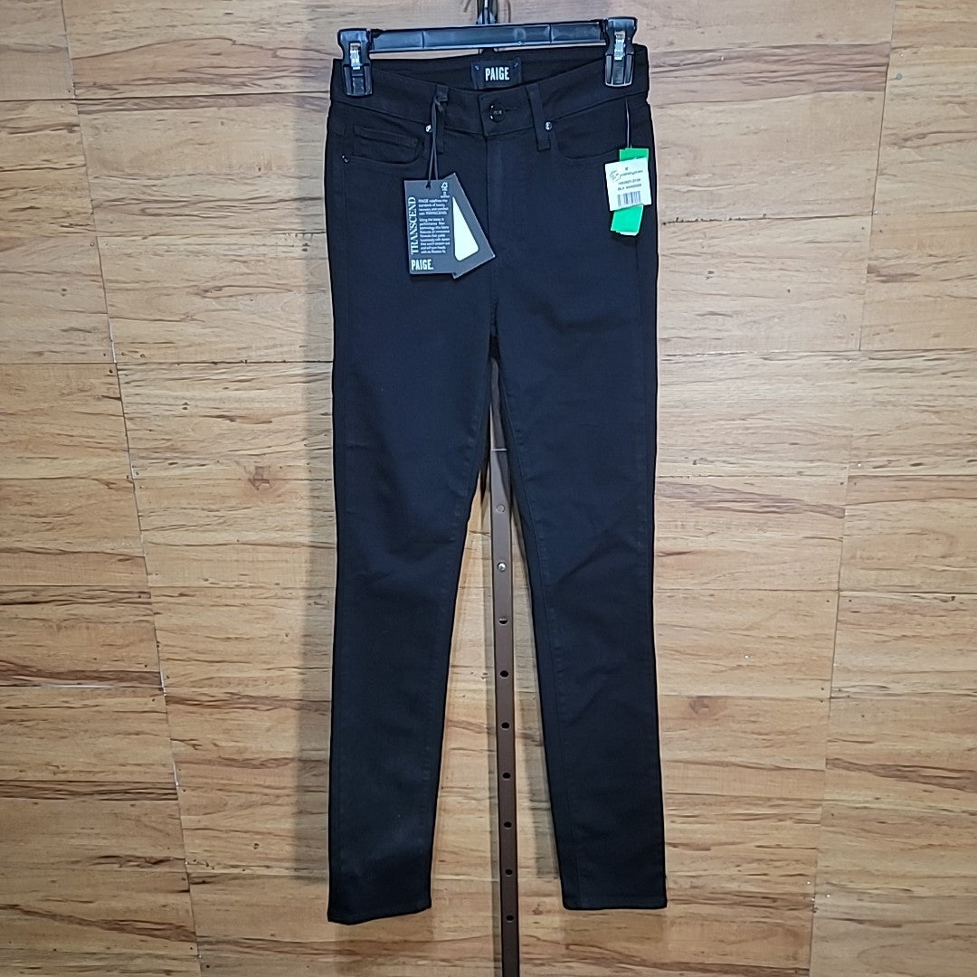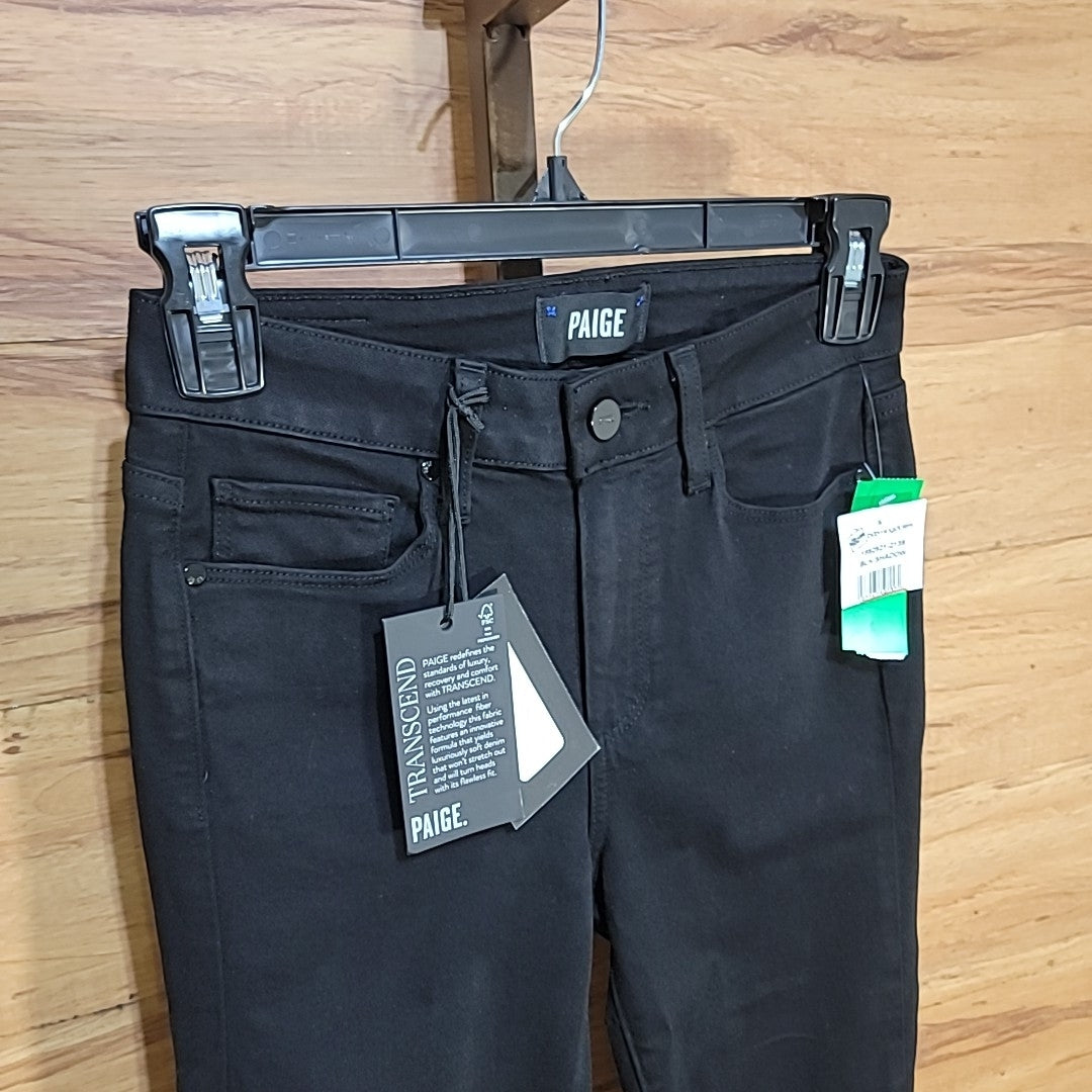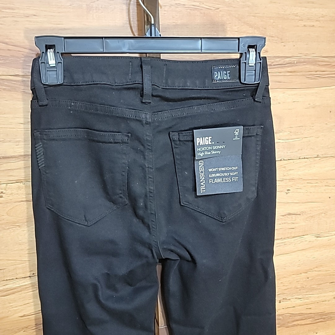 Paige Size 24 Black Transcend Hoxton High Waist Skinny Jeans NWT A high waist and jet-black wash amplify the flattering appeal of ankle-grazing stretch-denim jeans that hug every curve. 9" Rise. 31" inseam
