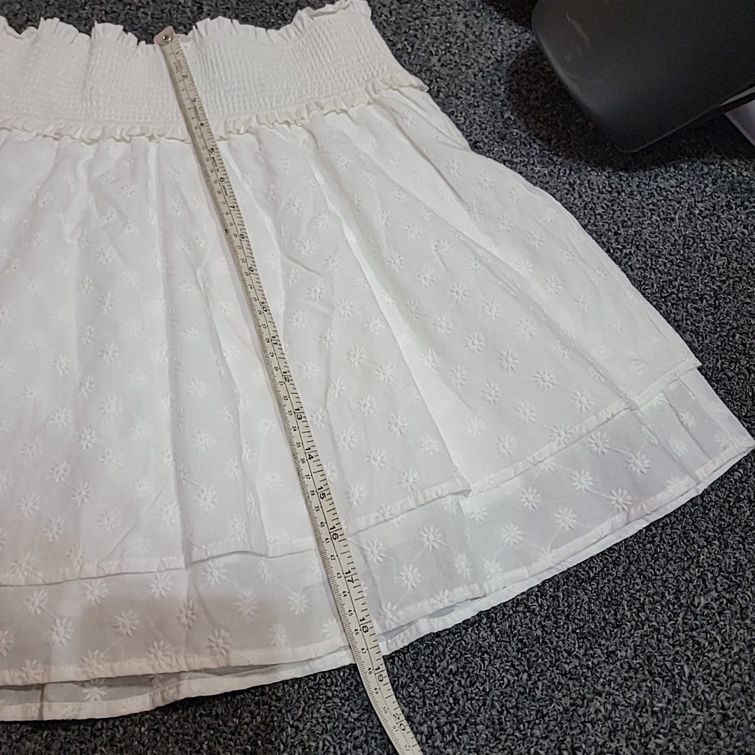 Rails Size M Addison Organic Cotton Smocked Mini Skirt NWT Double layer ruffle with embroidery. wide elastic waist. fully lined.