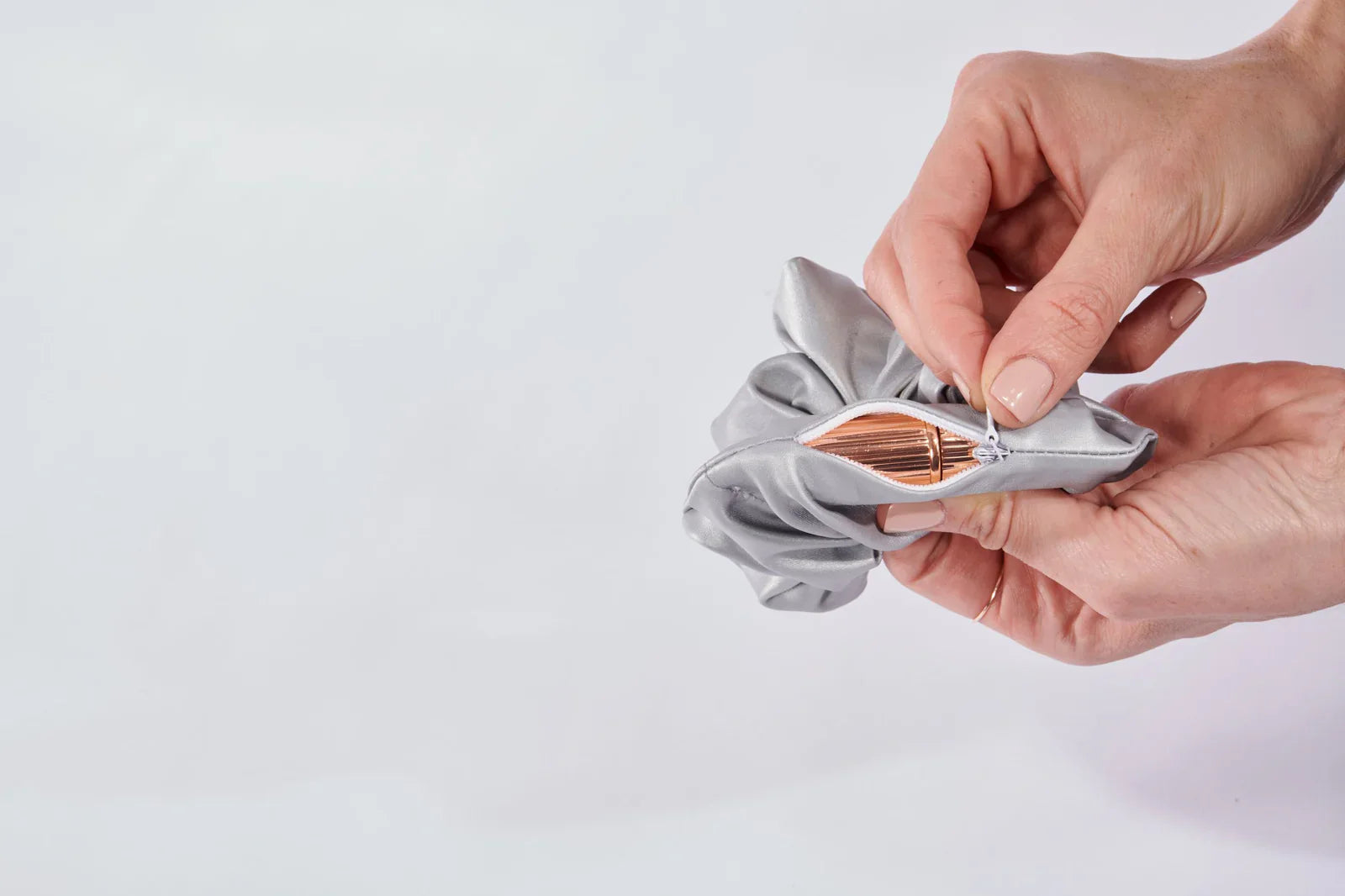 This two pack of stylish, functional hair scrunchies will be your new favorite accessory. With reflective material for safety after dark and invisible zippered pockets for your small essentials, these scrunchies multitask just like you! Ever forget to take off your rings while walking into the gym? Our team loves storing lipstick, rings and earrings in the zipper pockets during our studio and gym sessions.