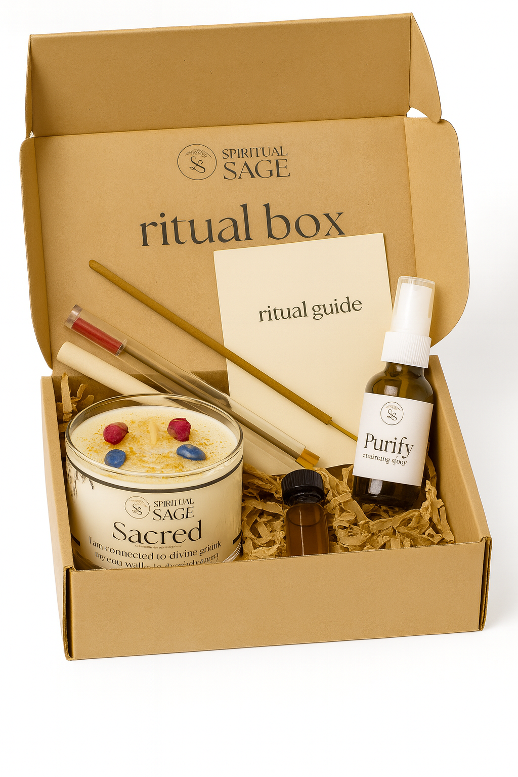Connect with the divine within and around you through the Sacred Ritual Box. Centered on the white Sacred Candle, this set deepens spiritual awareness and divine alignment.