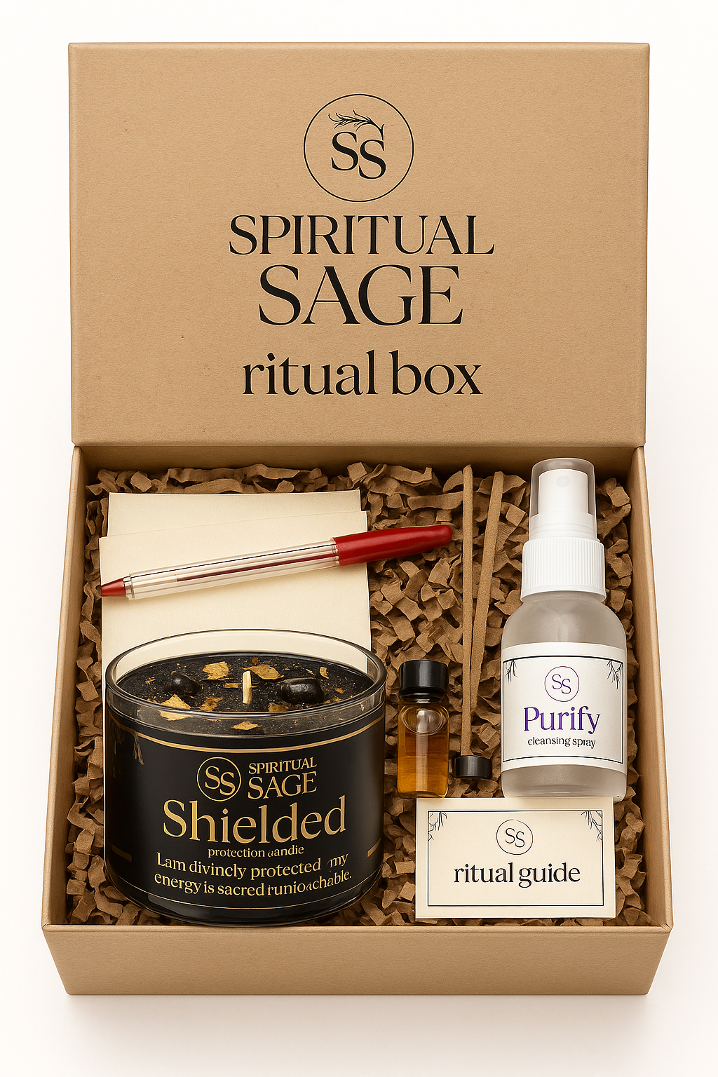 Stand in your power with the Shielded Ritual Box. Built around the black Shielded Candle, this set creates a spiritual shield to guard your energy, home, and spirit.
