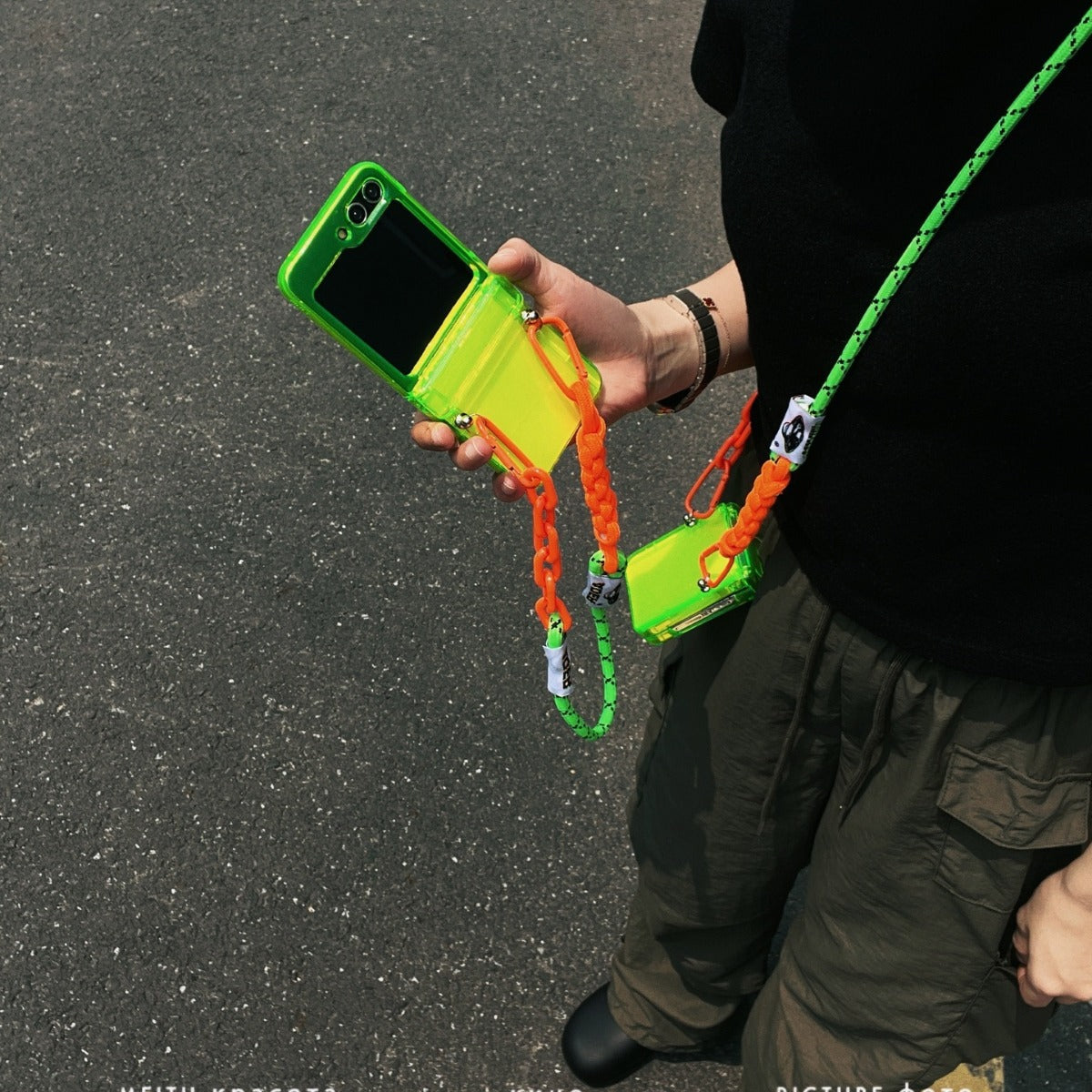 Suitable for Samsung Galaxy Z Flip5 phone case simple fluorescent green zflip4/3 folding screen protective cover